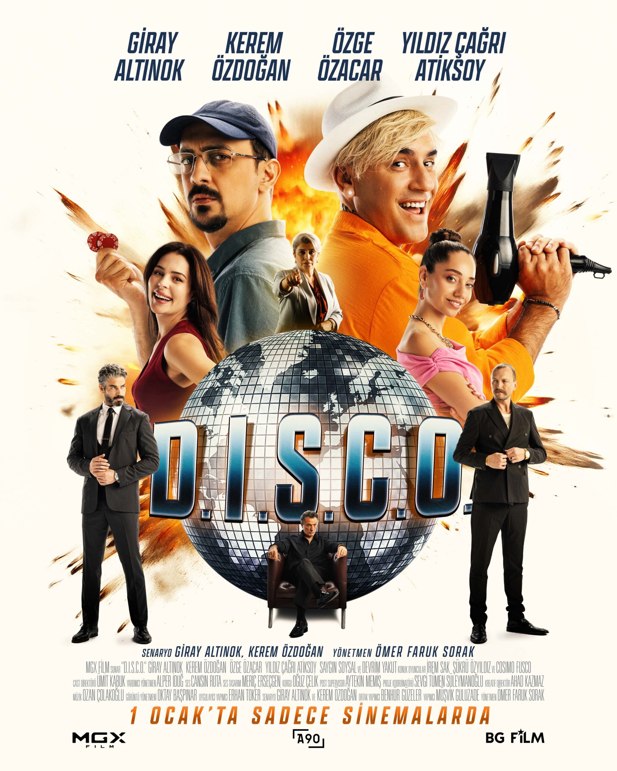 Yapımcılığını MGX Film ve BG Film’in üstlendiği, yönetmen koltuğunda Ömer Faruk Sorak’ın yer aldığı, senaryosunu Giray Altınok ve Kerem Özdoğan’ın beraber kaleme alıp aynı zamanda başrollerini de paylaştıkları komedi filmi ‘D.I.S.C.O.’nun kadrosunda ayrıca Özge Özacar, Yıldız Çağrı Atiksoy, İrem Sak, Şükrü Özyıldız, Saygın Soysal ve Devrim Yakut gibi güçlü isimler yer alıyor.
