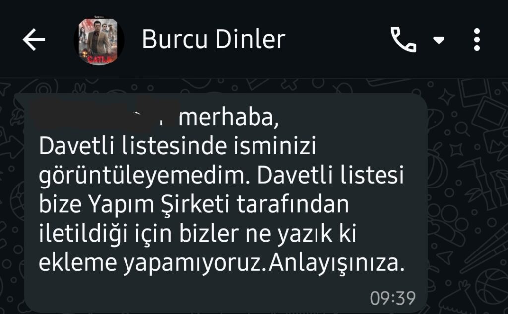 Ancak ayrımcılık, keyfi uygulama veya yapımcıları yanıltmak, meslek etiği ve sektörel güven açısından ciddi problem yaratıyor. Ortada kamuoyunu ilgilendiren kültür sanat anlamında sanat değeri taşıyan değerler var. O gün alınmayan basına yapımcının, oyuncunun ihtiyacı varken kendi emellerini tüm sektöre alet ediyor.