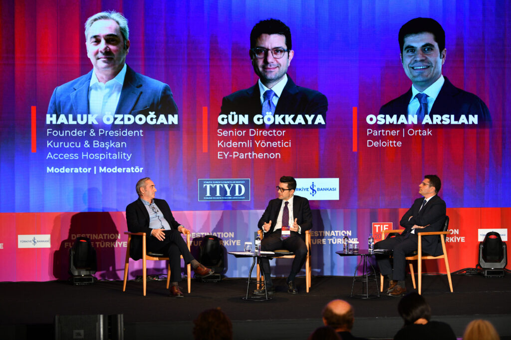 “Konaklama Sektöründe Sermaye Akışları ve İşlemlere Bakış” oturumunda ise Access Hospitality Kurucu & Başkanı Haluk Özdoğan (moderatörü), Ernst & Young Ortağı Gün Gökkaya ve Deloitte Ortağı Osman Arslan sahneye çıktı. Oturumda, Türkiye’deki otel yatırımlarındaki sermaye akışları, yatırımcı ilgisi ve dijital dönüşüm trendlerini ele aldı.